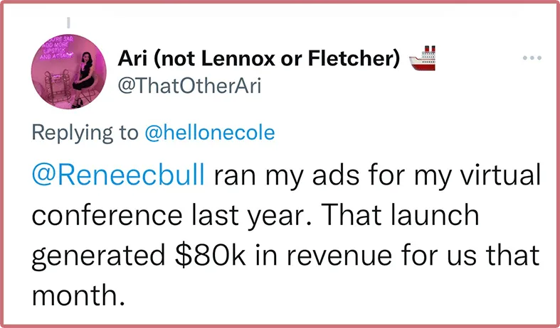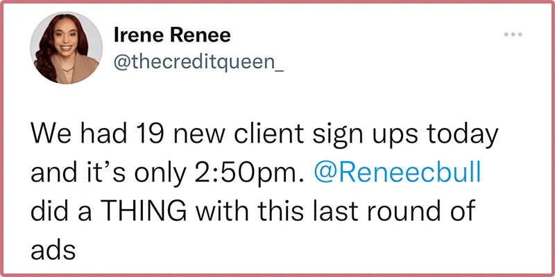 Renee is reliable, breaks down her logic and her process and works to make sure everyone's ultimate goal is achieved. IG strategy to implement questions in our live sessions increased engagement and views of our events via social media. FB Ads strategy increased ticket registrations for our virtual summit. Which helped our IG following grow nearly 20% in the time we started running ads.