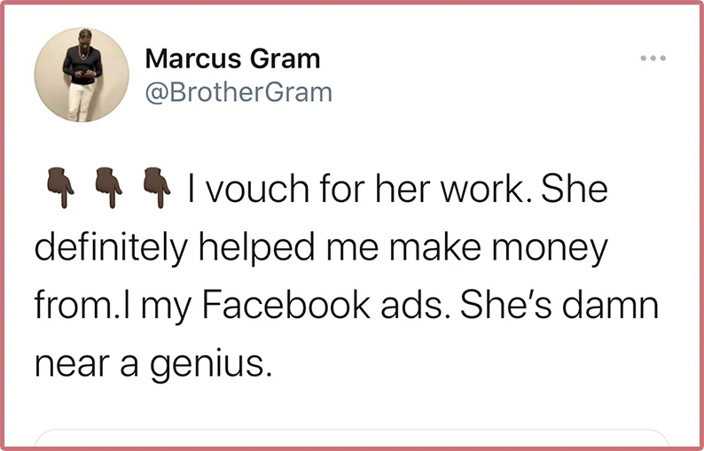I appreciate that she took the time to walk me through how to set up my aggregated events and make sure that my pixel was set up on all of my sales pages given the recent Facebook iOS event. I felt our time together feeling so much clearer and more confident going into